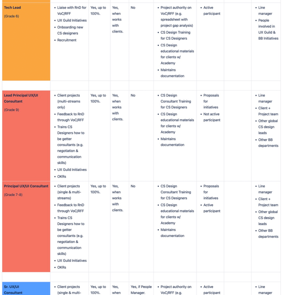 • The CS UX Competency Matrix: A granular breakdown of expectations for Junior, Mid, Senior, Lead, and Principal roles.